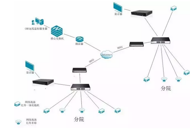 在方案部署上,只需要在总部安装一台CMS监控服务器与各分院通过DDNS网络相连接,即可实现实时监看、也可以通过IE浏览器,来浏览各节点的图像和数据。在各地分院中,D-Link采用了NVR视频服务器来管理分院的监控摄像头,监控的图像和数据可以通过视频服务器录像和存储。